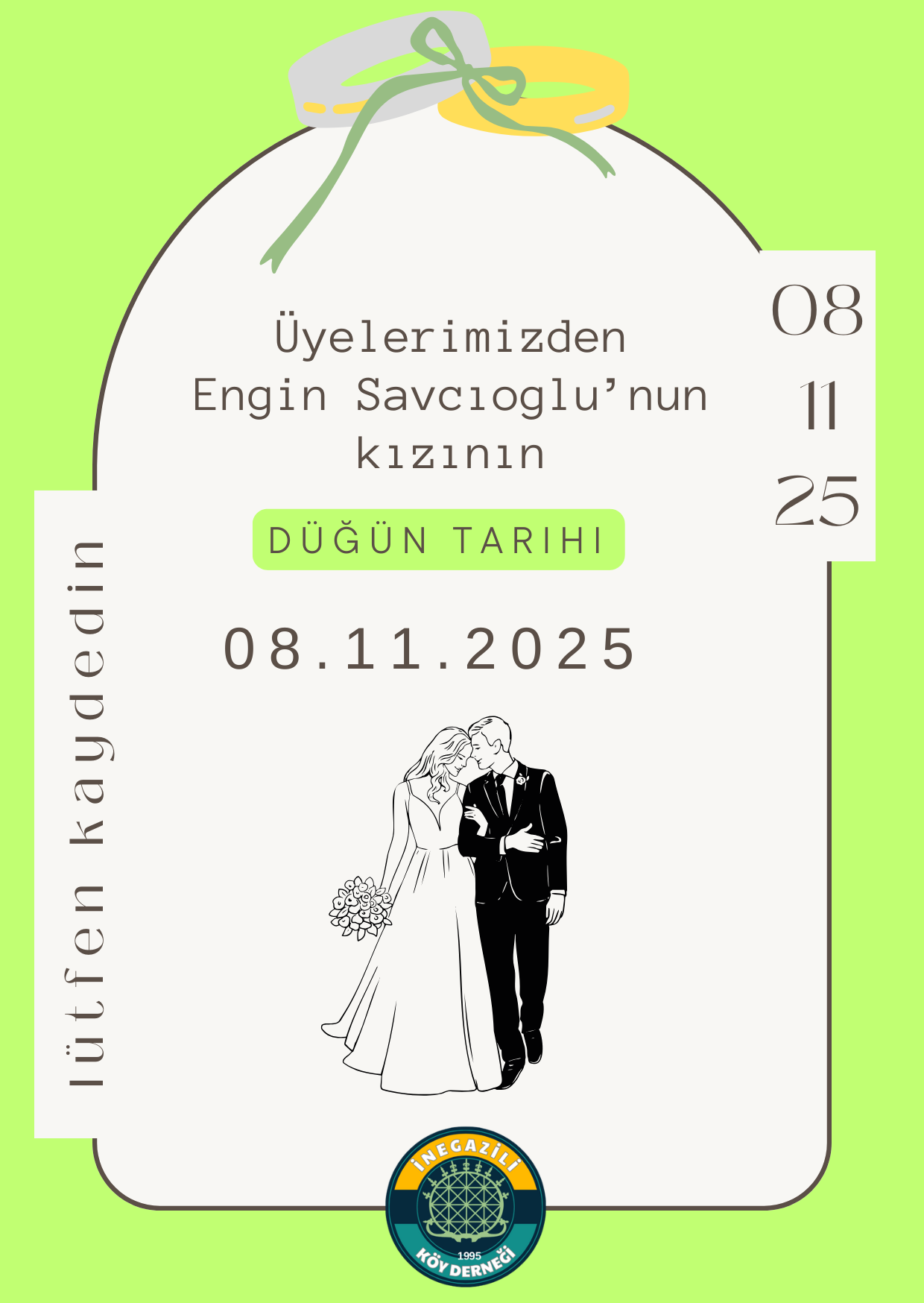 Bilgilendirme: Üyelerimizden Engin Savcıoğlu'nun kızının düğün tarihi 08.11.2025 lütfen kaydedelim.